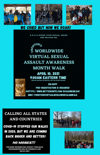 January 26, 2021January 27, 2021tonabuckLeave a Comment on Register for Trenton’s Virtual Worldwide SAAM Walk Register for Trenton’s Virtual Worldwide SAAM Walk https://betterunite.com/ROSAOneHeavenInc-trentonsvirtualworldwidesaamwalk Share this: Click to share on X (Opens in new window) X Click to share on Facebook (Opens in new window) Facebook Like Loading... Related